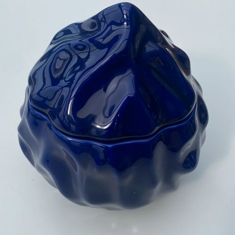 2 stk. smukke, koboltblå lågkrukker i keramik til småting, som urtepotteskjuler eller blot til pynt.