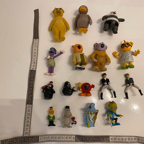Rasmus Klump Bully. 5,5 cm, Muppet Show 1985, Schleich, Sjælden Paddington 1980. Uden mærke. Ca. 5 cm, Lille Gris 1989. Ca. 3,5 cm, Milka secret boxMilka hemmelig æske bamse fra Milka chokolade æsker.