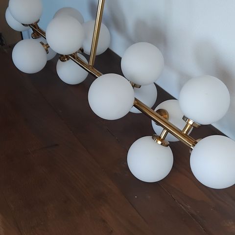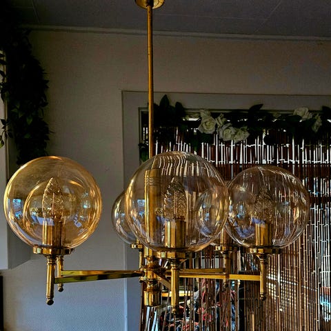 Stor flot glas græskar pendel med messing