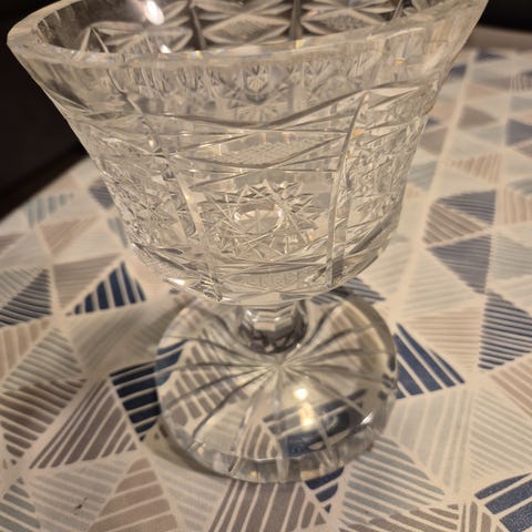 Blå glas skål på fødder. Uden skår el. lign.
