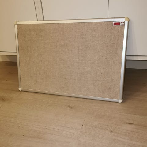 Udførelse: Opslagstavle med hør-bomuld overflade og ramme i aluminium.