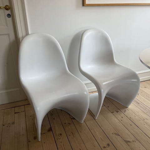 Verner Panton tegnede sin stol, Panton Chair i 1959, som en reaktion mod datidens traditionelle skandinaviske teaktræsmøbler. Inspireret af en ubrudt s-kurve skabte Panton som den første en stol støbt i ét stykke.
