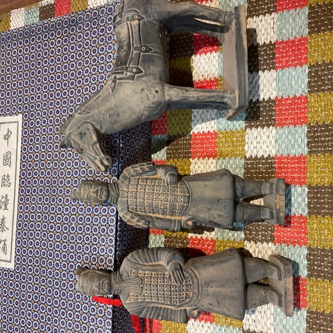 Smukt sæt med 3 terrakottakriger i god stand. Perfekt som dekoration i hjemmet eller på kontoret.