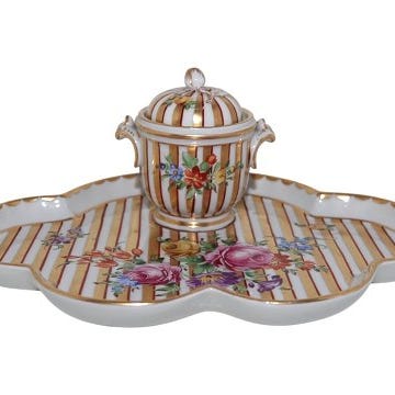 Pirkenhammer porcelæn fra Bøhmen / Tjekkoslovakiet, lågæske med purpur dekoration.