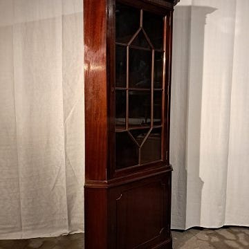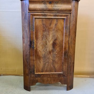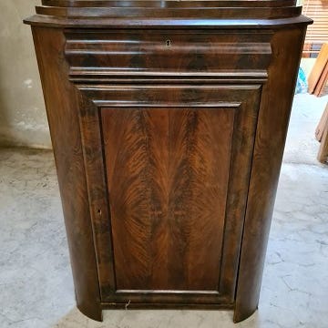Hjørneskab i fineret mahogni, fra 1900erne.