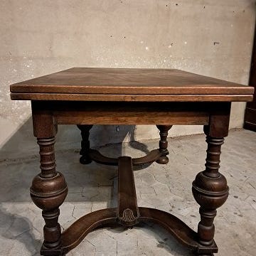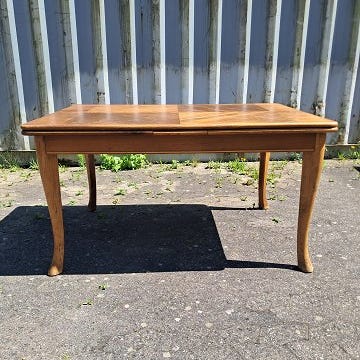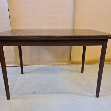 Spisebord i fineret nødetræ med hollandsk udtræk, fra 1950erne.
