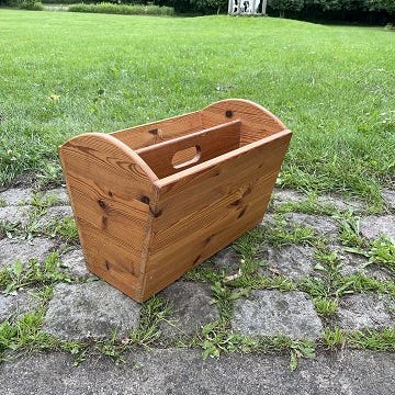 Magasinholder i bejdset bøgetræ, fra 1980erne.