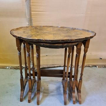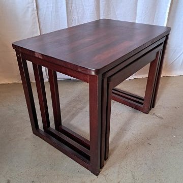 3 Indskudsborde i fineret mahogni, fra 1980erne.