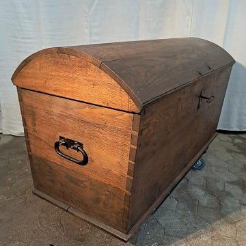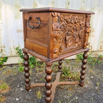 Kiste i fineret egetræ, fra 1980erne.