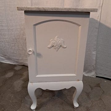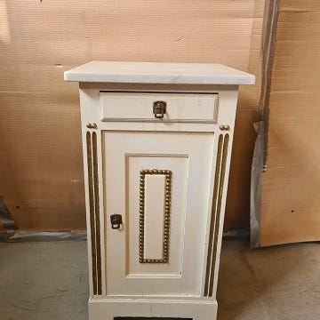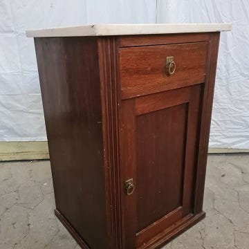 Lille skab i mahogni med marmorplade, fra 1910erne.