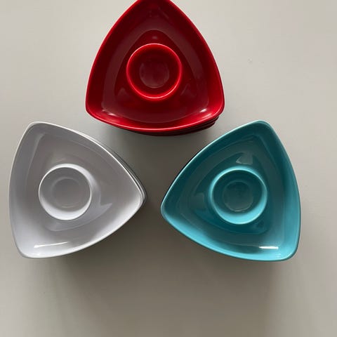 9 retro æggebægre i skønne farver,: