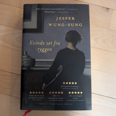 Jesper Wung-Sung. Bog med et omslag, der viser en person set bagfra ved et bord med en vase. Sender ikke for køb under 200 kr.