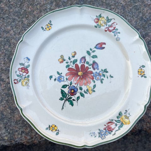Fin gammel tallerken (dyb) fra Villeroy & Boch, mrk Frida, fajance, blåmønstret kant, diameter 24,5 cm - højde 5 cm, fin stand.
