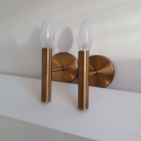 Super flotte og sjældne messing senge/væglamper fra Hags i Østrig. Antagelig produceret i 50`erne. skærm Ø10,5 cm H 10,5 cm Fra væg 25 cm.