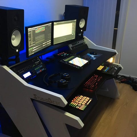 Det er et godt solid professionel studio bord med 19" racks i hver side.