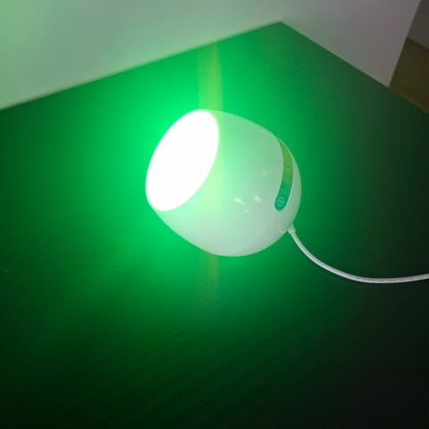 Lampe, farveskiftende lampe, der veksler mellem fem farver, glidende overgang