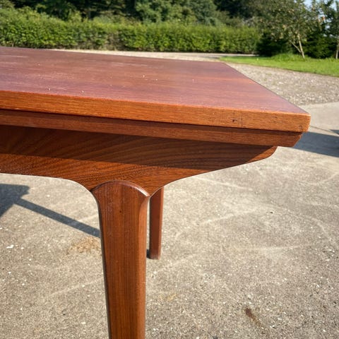 N O Møller spisebord i teaktræ med hollandskeudtræk, fremstår pæn - levering kan tilkøbes