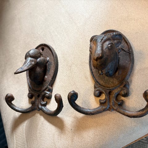 3 lyserøde metal-hjerte knager med klæbe bagpå, så her behøves ingen søm/hammer.