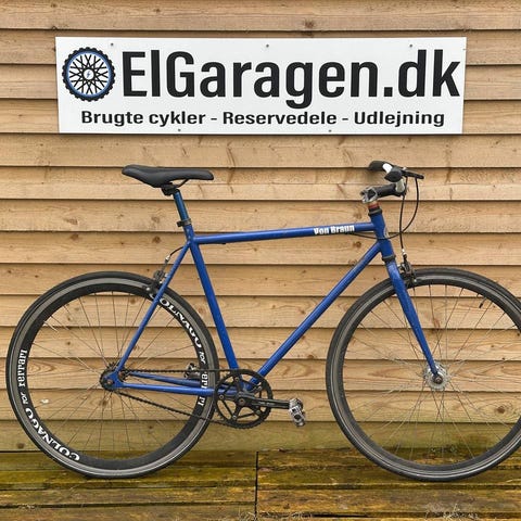 Fixie cykel med blå detaljer, kun med 1 gear for at holde vægten nede og for at gøre den nem at træde i. Alt fungerer som det skal - Ny serviceret hos cykelværksted