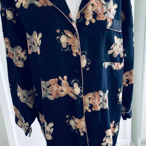 Natskjorte Janice str. 44-4, ubrugt men vasket en gang. Dyb rød med lysere striber. 83% polyester, 17% bomuld. Ann. nr. D44