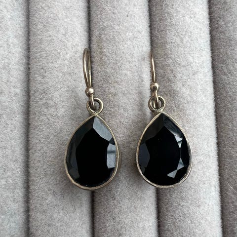 Disse er et par dråbeformede sølvøreringe med en tekstureret overflade, der giver et stilfuldt udtryk. Øreringene har en enkel krog til nem påsætning og måler 25 mm i længden. De er ideelle til både hverdag og specielle lejligheder som en elegant tilføjelse til ethvert outfit.