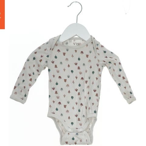 Bodystocking til børn med kortærmet design. Den har et mønster med elefanter i brune og grønne farver på en hvid baggrund. Velegnet som undertøj eller som en enkel beklædningsgenstand til små børn.