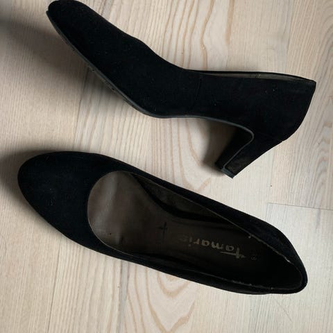 Sort Tamaris pump med hæl. De er ikke brugt ret meget og der er fx ingen synlige spor på hælen - se billede