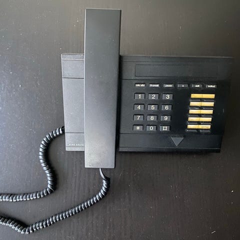 Vintage Kirk 'mini danMark' vægtelefon i flot grøn farve. Dansk design fra 1980'erne, Kompakt 'mini' model med trykknapbetjening og built-in højttaler i fin stand