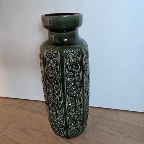 18 cm høj. Har nag under bunden der hverken har betydning for udseende eller stabilitet