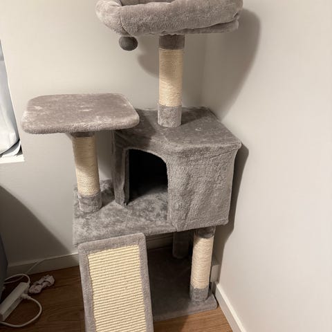 Skab en sjov forandring i din kats hverdag med disse elementer fastgjort til væggen. Her kan den klatre og hvæsse kløerne. Den praktiske kradsestamme har et diskret design der passer til de fleste hjem.