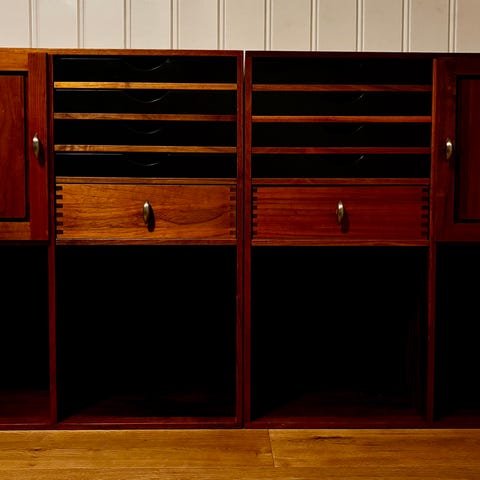 Super flot At-bo reol i massiv valnød og finger tappede samlinger.