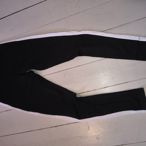Begge bukser måler 90 cm når taljeelastikken er spændt 85% ud. Når bukserne ligger som på billederne måler taljen foran 30 cm og 30 cm bagpå, altså ialt 60 cm, når bukserne ikke er spændt ud og bare ligger på bordet.