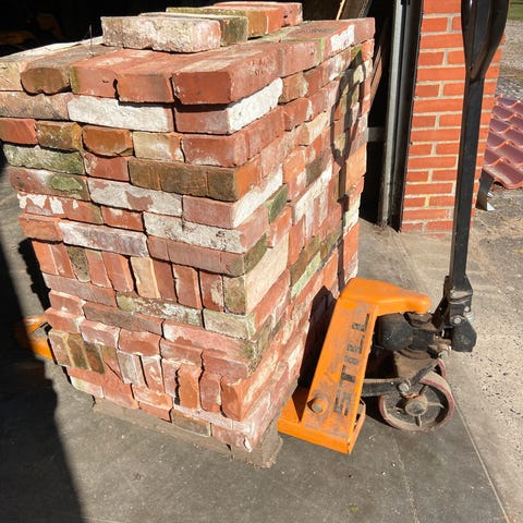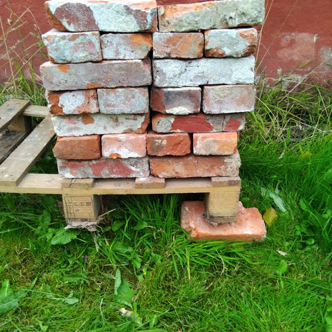 Mursten i røde brune gule og hvide nuancer. Pris pr stk 4 kr