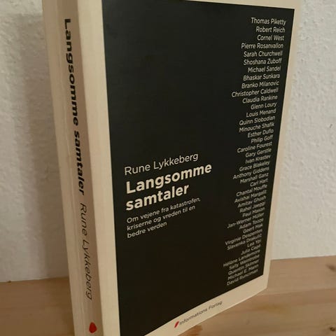 Langsomme samtaler (2022), Rune Lykkeberg, emne: politik, - Om vejene fra katastrofen kriserne og vreden til en bedre verden.