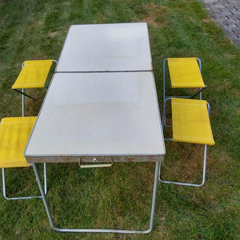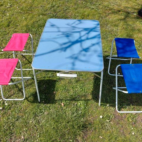 Vintage campingsæt, Super fin campingsæt vintage i træ med meleret bordplade