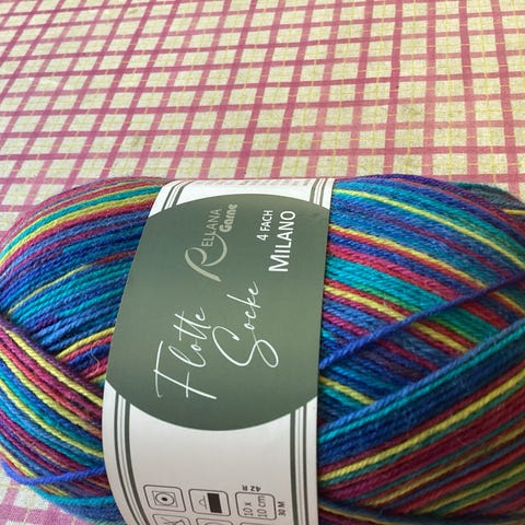 100 g strømpegarn fra Rellana. Øko-tex