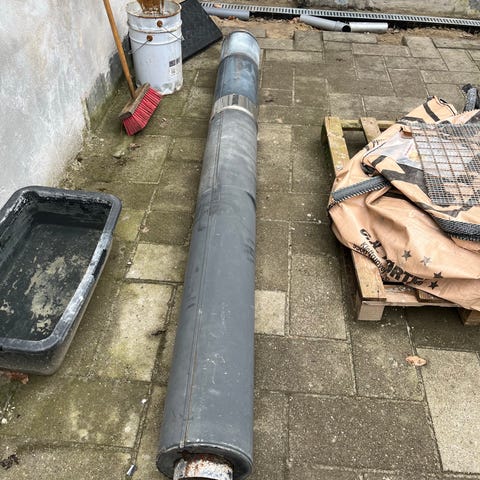 jern skorsten. har været brugt til pillefyr. Nem at afmontere... :)