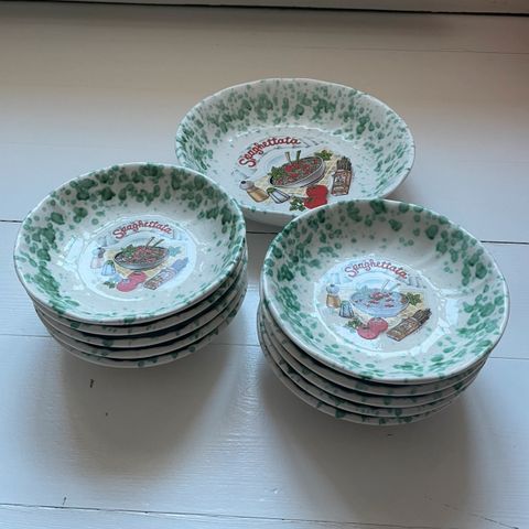 Stellet mangler få dele og er næsten intakt, der er: 5 kopper, 5 underkopper, 6 desserttallerkener, 5 dybe tallerkener, 5 flade tallerkener, i alt 26 dele. Alle dele er uden skår eller hakker.
