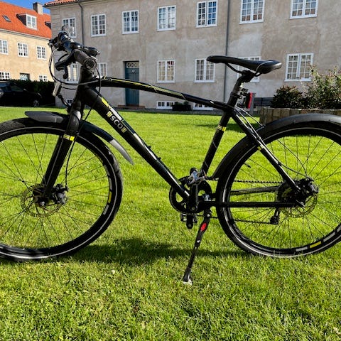 Næsten ubrugt cykel der har kørt 3-4 små ture. Batteri har været fast til opladning, og taget ind efter brug. Cyklen er fra 2023