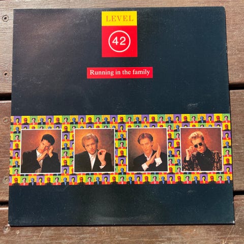 Billedet viser "Running in the Family - Platinum Edition" af Level 42, en 12" vinyl LP.