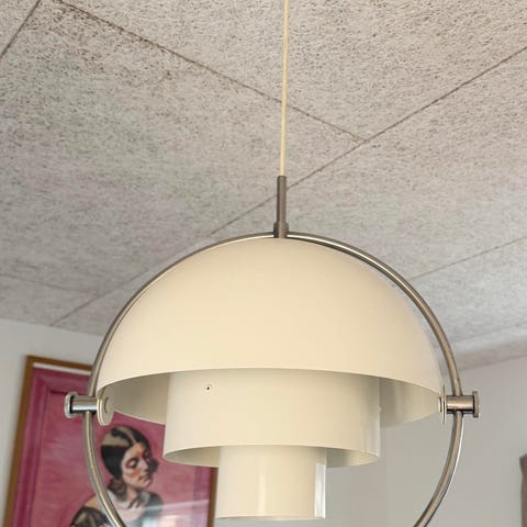 Gubi Multi-Lite pendel designet af Louis Weisdorf. Pendlen består af en mørk blå metalskærm opdelt i justerbare halvkugler, som er monteret i en rund messingfarvet ring. Konstruktionen gør det muligt at dreje skærmene og dermed variere lysretningen. Lampen er velegnet som belysning over spisebord, sofabord eller i et hjørne af stuen. Materialer og farver fremstår som kombination af mørk blå lakeret metal og messingfarvet metaldetaljer.