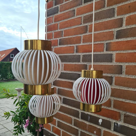 Pendel, Retro ukendt, Flot stor messingfarvet pendel med orange effekt