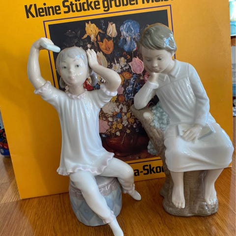 Porcelæn figur, Lladro figur der forestiller tre hunde i en kurv med tæppe. Formentlig af Juan Huerta. Figuren er detaljeret med forskellige farver og glaseret finish. Velegnet som dekorativ genstand i hjemmet. H: 22 B: 21 D: 13 Meget flot uden afslag. Forsendelse Kr. 79,-