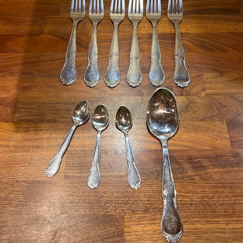 Fem stk, 16,5 cm, 145 g. i alt. 150 kr.