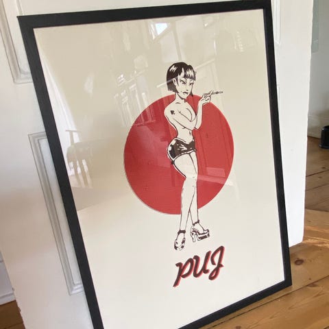 Fin og velholdt peepz monkey med plakat.