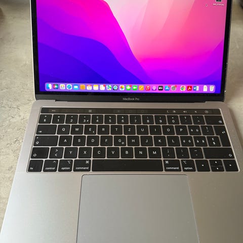 Super god MacBook Pro 2019 model A1988. Der er fejl på skærmen men ellers virker den og kan let køre med ekstern skærm. Lille mærke på fronten.