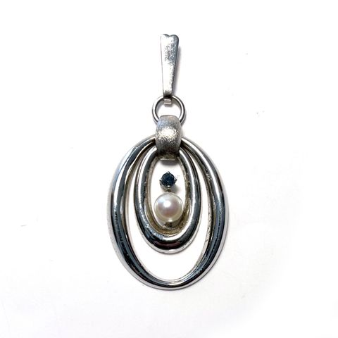 3: Perlemor med kæde der ikke er sølv. Mål: 3,5x2,3 cm. Kæden er 51 cm. Vægt: 7 g.