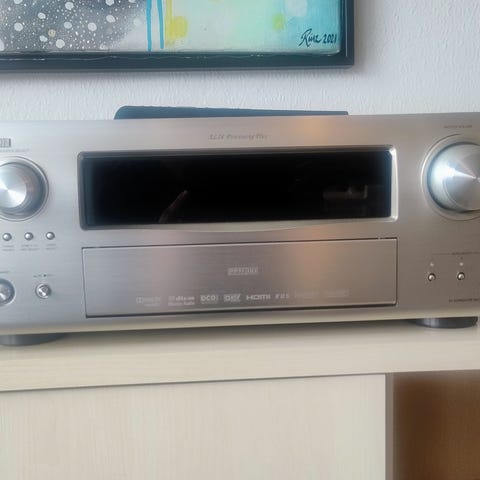 Denon AVR-X4100W Receiver til hjemmebiografbrug i sort farve. Enheden er næsten ikke brugt. Fremstår som ny. Der er dog gået et eller andet sikring/power supply som