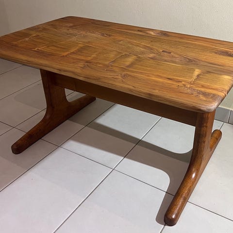 Rigtig flot skandinavisk massivt teaktræssofabord i Retro-look.