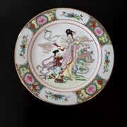 8 kinesiske “Bok Choy” porcelænstallerkener m. sommerfugle & shou-tegn